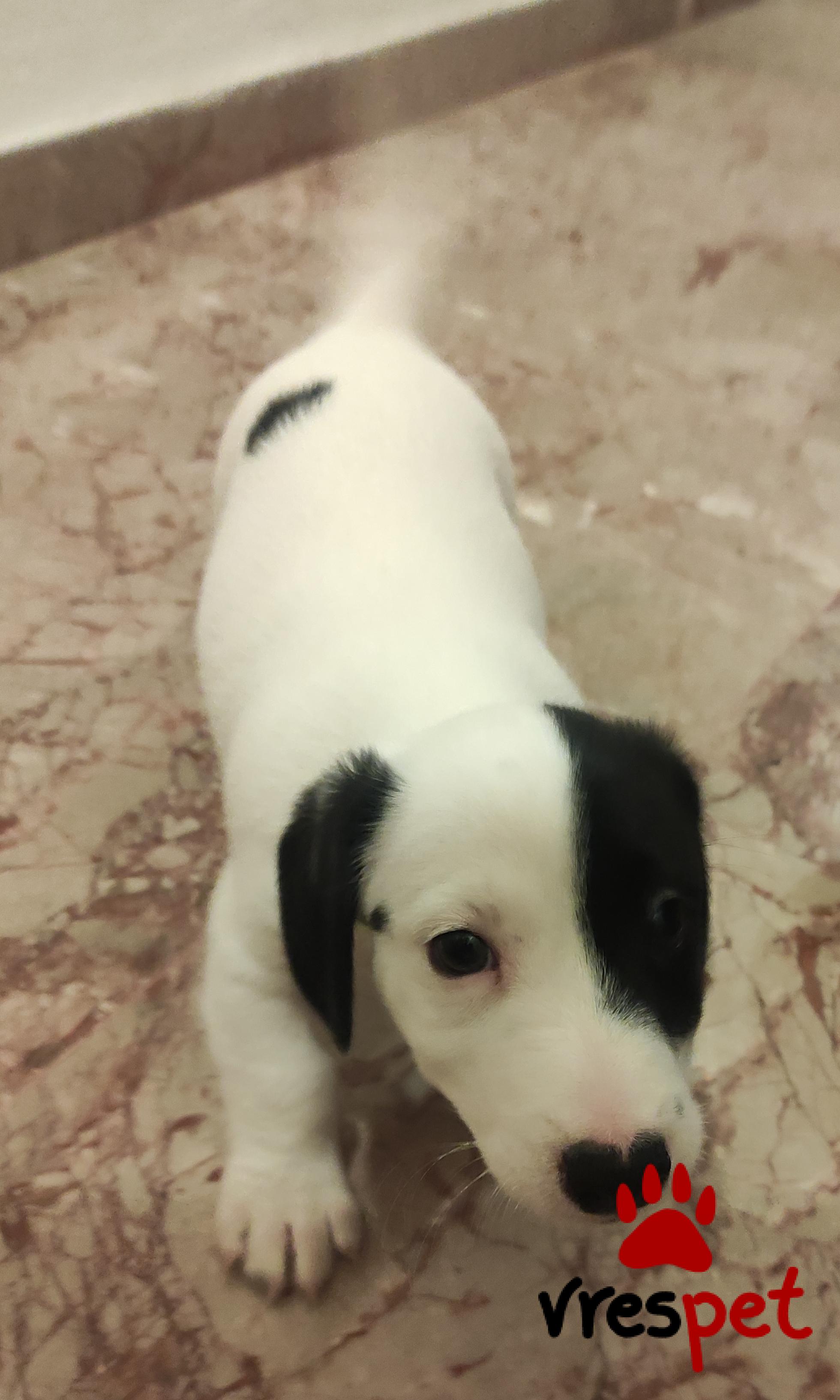 JACK RUSSEL terrier αρσενικό Ασπρόμαυρο πολύ προσεγμένο, εξαιρετικής μορφολογίας από άριστους γονείς, είναι το κλασικό με τα κοντά πόδια και γεροδεμένο σώμα, θα γίνει 8 - 9 κιλά, κάνει ήδη την ανάγκη του σε πάνα, τρέφεται αποκλειστικά με ξηρή τροφή Belcanto