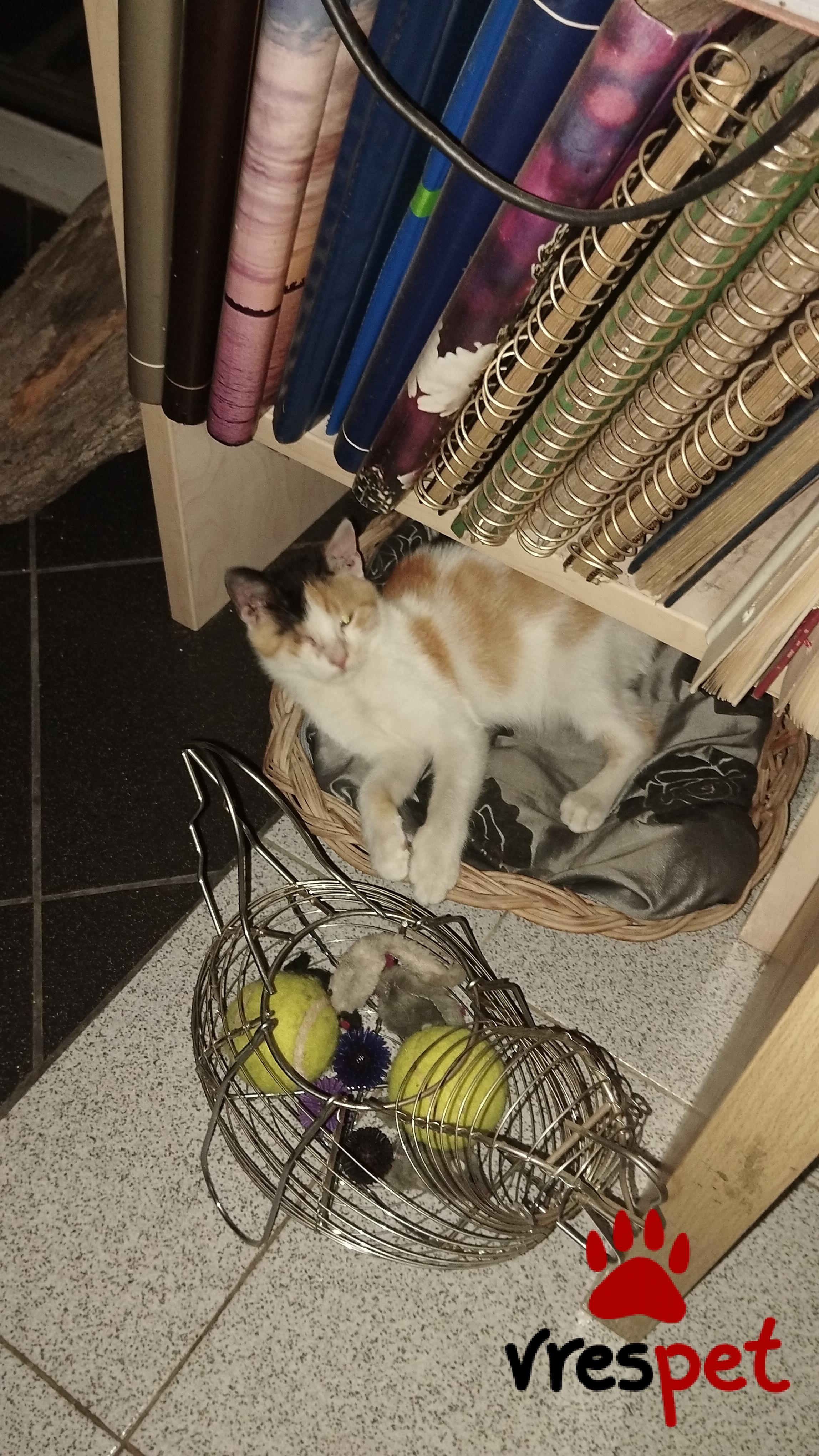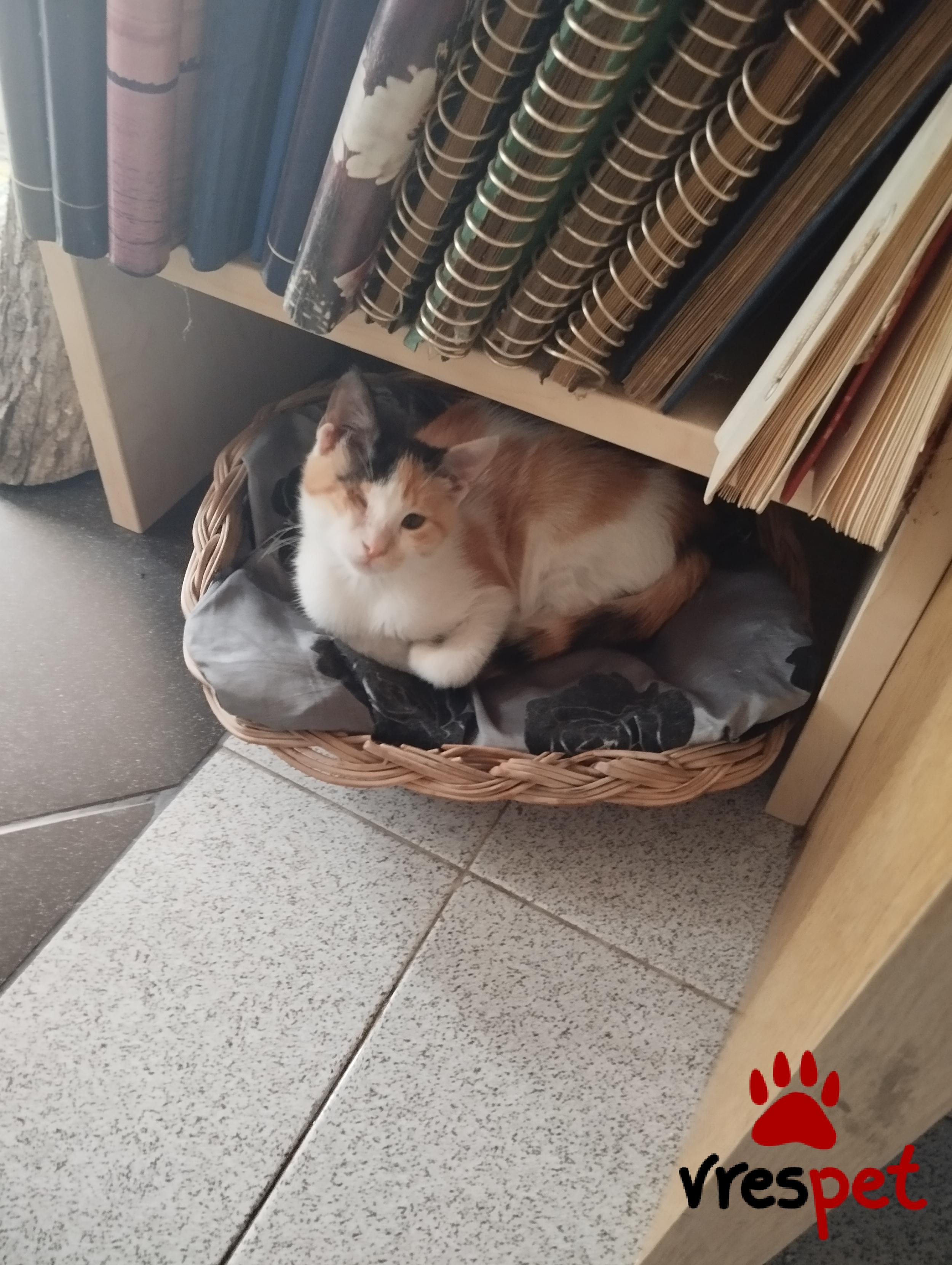 Χαρίζεται μικρή γατούλα calico. Βρέθηκε στο δρόμο και έχει χάσει το ένα της ματάκι. Χαίρει άκρας υγείας και είναι πολύ παιχνιδιάρα. Πρέπει να είναι περίπου 3 μηνών. Δυστυχώς λόγω μεγάλων απουσιών από το σπίτι και προχωρημένης ηλικίας, δεν μπορώ να την κρατήσω.
