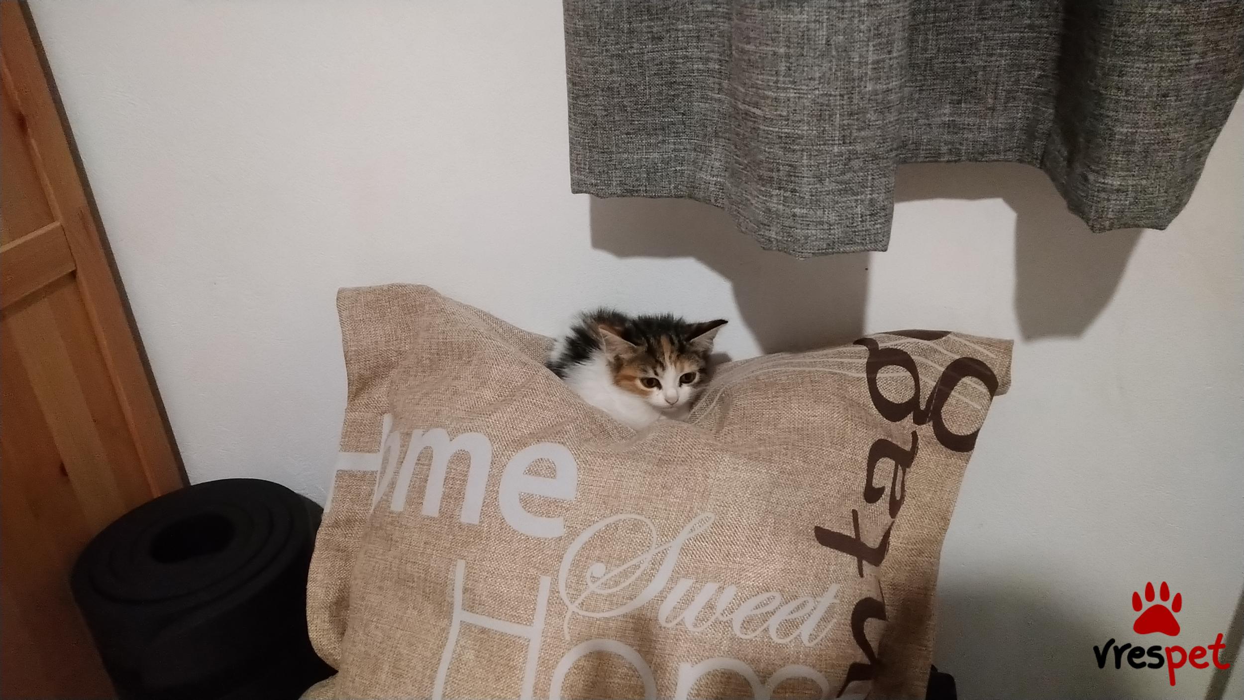 Βρέθηκε κρυμμένο σε κάτι θάμνους να νιαουρίζει. Προσαρμόστηκε ευκολά στη σπιτική ζωή. Είναι ήσυχο, φιλικό με τις άλλες γάτες και ξέρει να χρησιμοποιεί τη τουαλέτα. Αυτή την περιόδο κατοικεί στο Πόρτο Ράφτη αλλά μπορεί να μεταφερθεί σε όλη την Αττική.