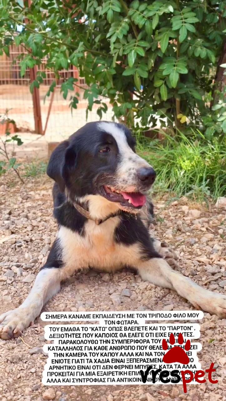 Ένα πλάσμα που από μωρό βίωσε τον πόνο. Βρέθηκε πέρσι σε άσχημη κατάσταση πεταμένος σε ένα χωράφι, με αποτέλεσμα να μεταφερθεί στον κτηνίατρο και να ακρωτηριαστεί μερικώς το ένα πίσω πόδι του, ενώ το άλλο πίσω πόδι έχει αγκύλωση.