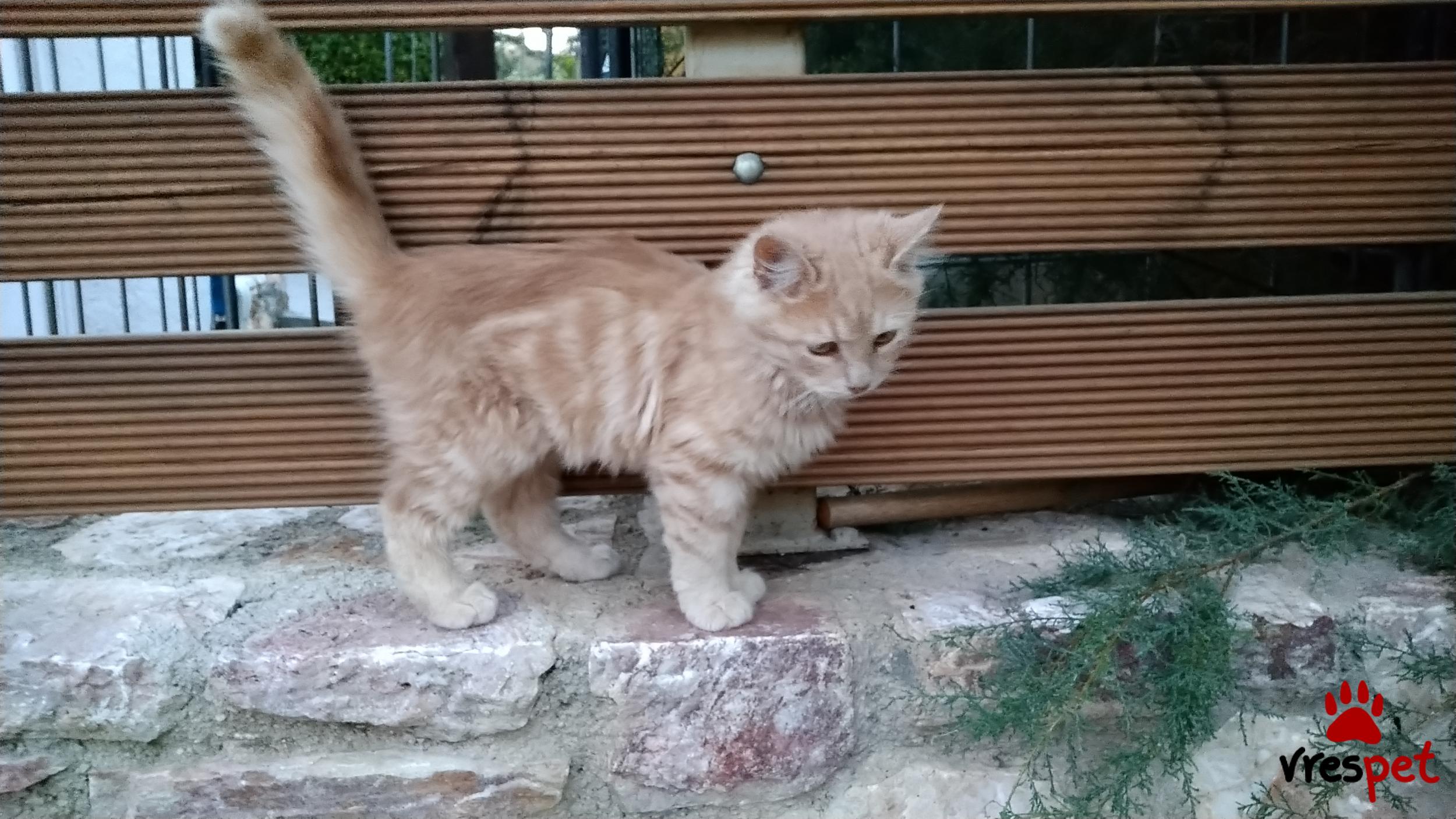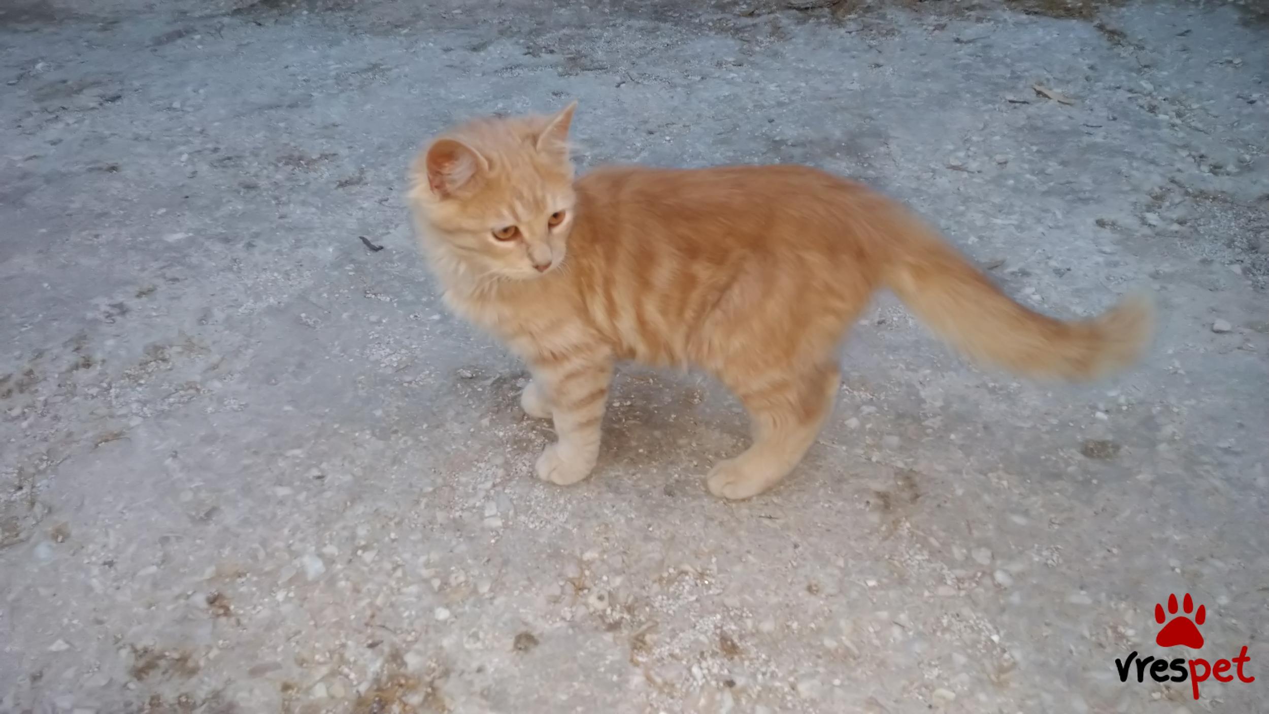 Συχνάζει σε μια αποικία με άλλα γατάκια. Μένει μαζί με την μαμά του ακόμα η οποία τον περιποιείται καθημερινά. Είναι ήσυχος, πολύ φιλικός με τους ανθρώπους και τις άλλες γάτες. Το πραγματικό του χρώμα είναι πορτοκαλί - καφέ, όπως φαίνεται στην τελευταία φωτογραφία. Αν τον θέλετε μπορεί να γίνει δικό σας.