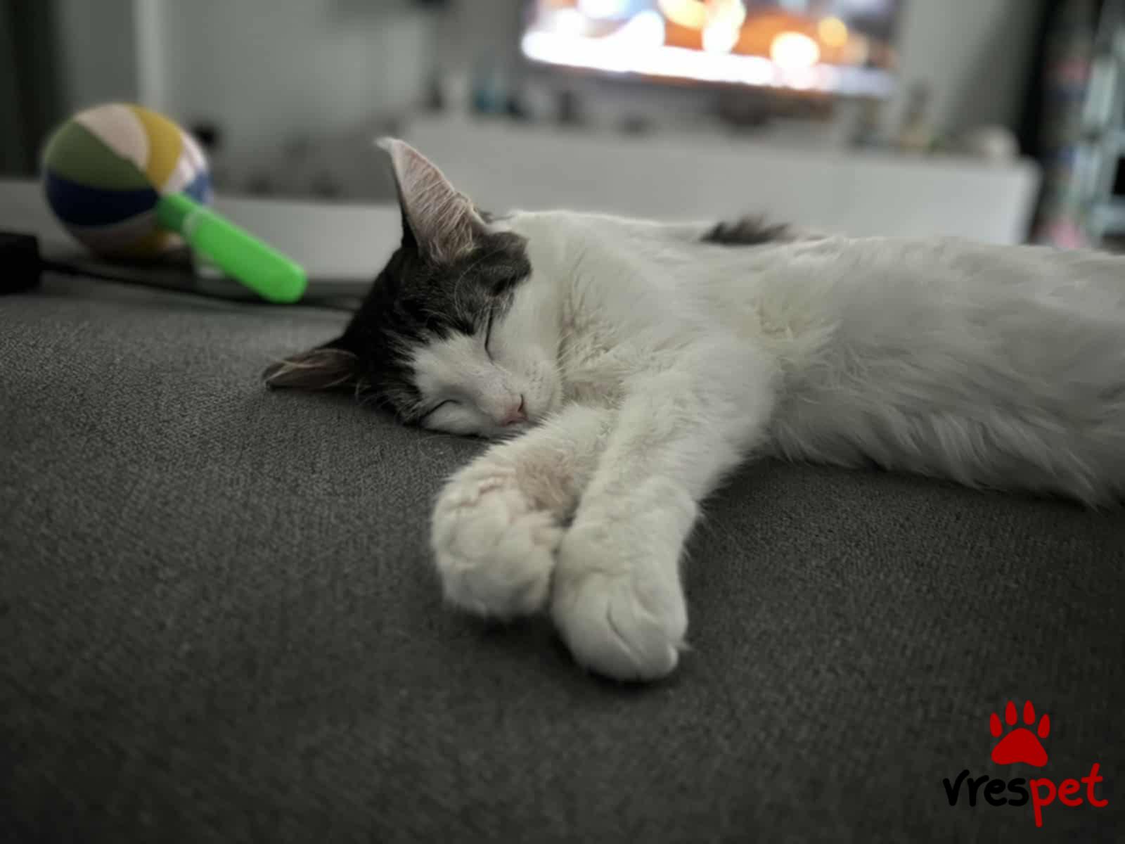 Της αρέσουν πολύ τα χάδια, ο ύπνος και μπορεί να βολευτεί παντού - μέχρι και στο κλουβί μεταφοράς.
