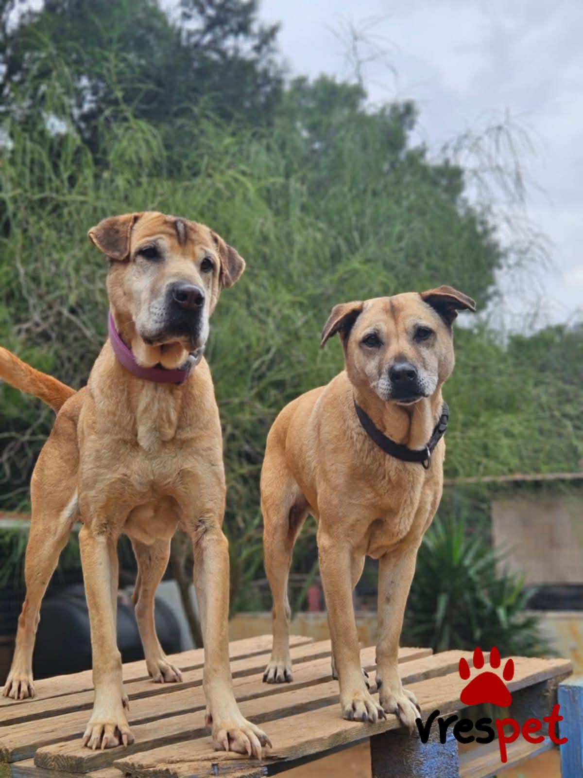 Peggy and Marlon Peggy and Marlon, the two mixed-breed Shar Pei siblings, are inseparable. They are deeply bonded and wish to be adopted together because they simply can't live without each other. Let us introduce them to you! Peggy: She’s incredibly smart, funny, affectionate, expressive, and playful. She’s always the first to get into mischief, full of energy, and truly adorable. Peggy will greet you, get to know you, and amaze you with her character and temperament. Marlon, her brother, is a bit more serious, providing a perfect balance to Peggy’s lively nature. He’s very sweet, sensitive, and kind-hearted. He’s cooperative, expressive, and loving. Marlon will approach you with a ball in his mouth, asking you to play with him. Yes, indeed! These two siblings bring joy and liveliness to the enclosure they live in. They’ve earned the respect and love of the other dogs and, of course, they’ve won the hearts of everyone who meets them! They love going for walks, adore people, and enjoy the company of other dogs, but they aren’t particularly fond of cats. Peggy and Marlon would love a parent with some experience with dogs, and plenty of love and enthusiasm for playtime and long walks. Born in 2017, they are spayed/neutered, vaccinated, full of joy, and waiting for you! This is all they want you to know about them—Peggy will tell you the rest in person, as she’s taken charge of their PR. If you are interested in adoption please fill in our form: https://linktr.ee/adoptapawtoday?fbclid=PAAaZSqC4H-GKtolVnOWDKnAqxzMvPe1AQcj6AVzamxIYrVCFClzs614FjWBE