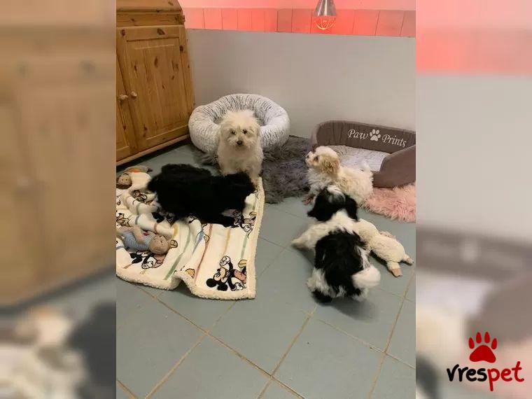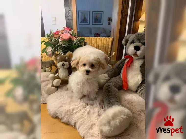Our little Maltipo puppies can now slowly move out. We have puppies in very special colors: Merle with white, apricot-white and black-white. The mother is a Maltese and the father a dwarf poodle. Both parents live with us and can be visited. Our puppies are well socialized, naturally vaccinated, dewormed several times and chipped. They grow up in our house and are just sugar sweet. We breed according to paragraph 11 of the Animal Welfare Act. Maltipoos are hybrid dogs that do not fur and therefore also suitable for many allergy sufferers. Due to their pleasant size, they are ideal family dogs.