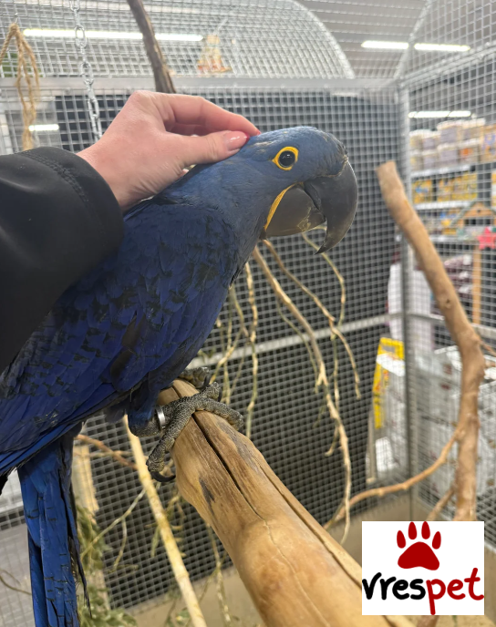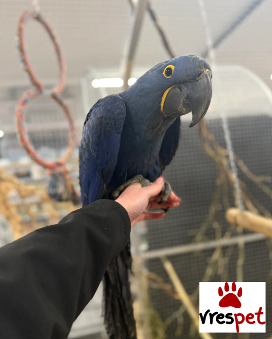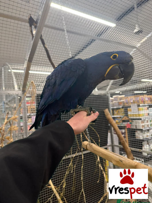 Όμορφο μωρό Υάκινθος Μακώ με Χειροκίνητη Εκτροφή