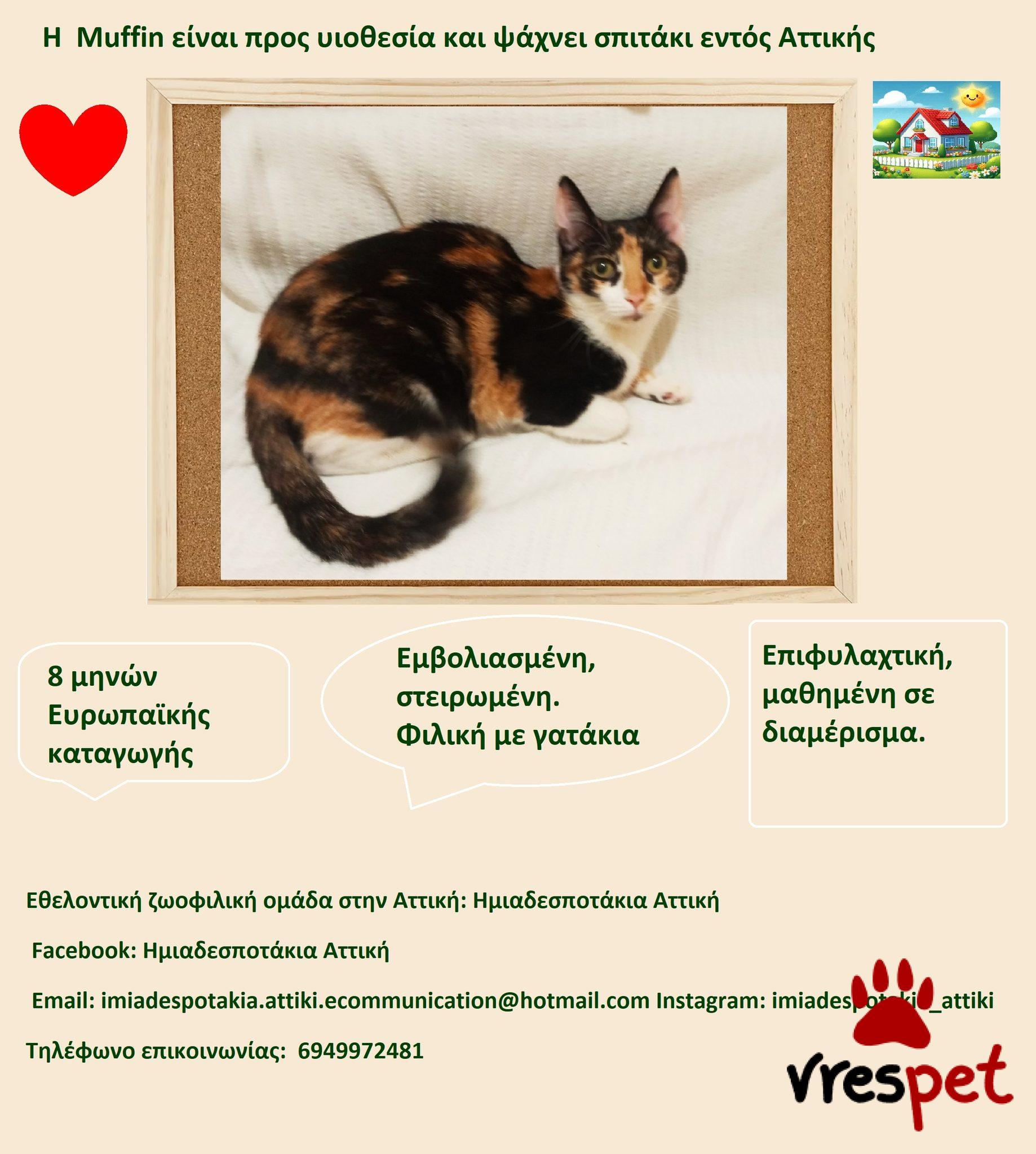 Η Muffin κι η Vanilia είναι προς υιοθεσία, ψάχνουν καλά σπιτικά υιοθεσίας, καλές κι υπεύθυνες οικογένειες, εντός Αττικής