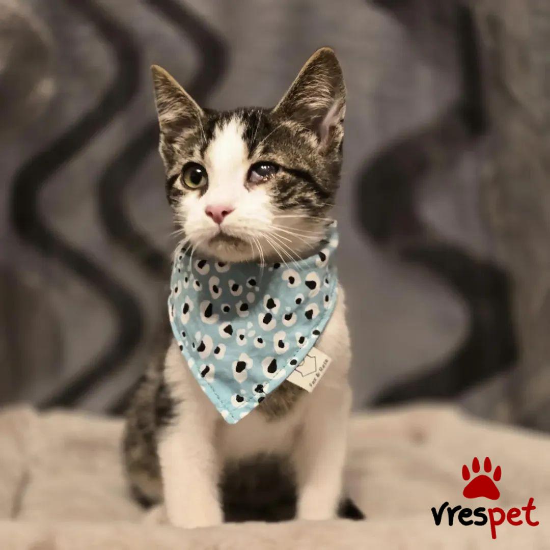 Βρέθηκε στον δρόμο μαζί με τα αδέρφια του και τη μαμά του κατά τη διάρκεια δράσης στειρώσεων. Είχαν όλα πρόβλημα στα μάτια, ευτυχώς με τη κατάλληλη θεραπεία όλα τους είδαν ξανά. (Η μαμά στειρώθηκε και επανενταχθηκε στη γειτονιά της).